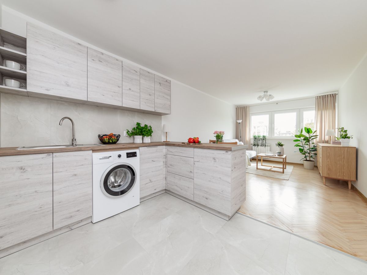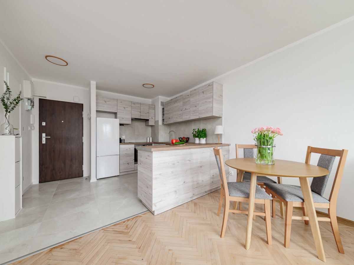 - przestronny pokój dzienny z w pełni wyposażonym aneksem kuchennym (23,60 m2),