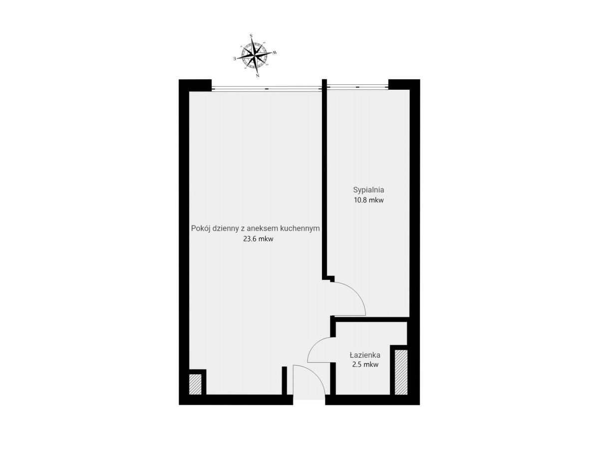 Mieszkanie o łącznej powierzchni 36,90 m2 składa się z następujących pomieszczeń: