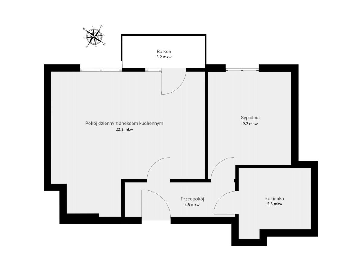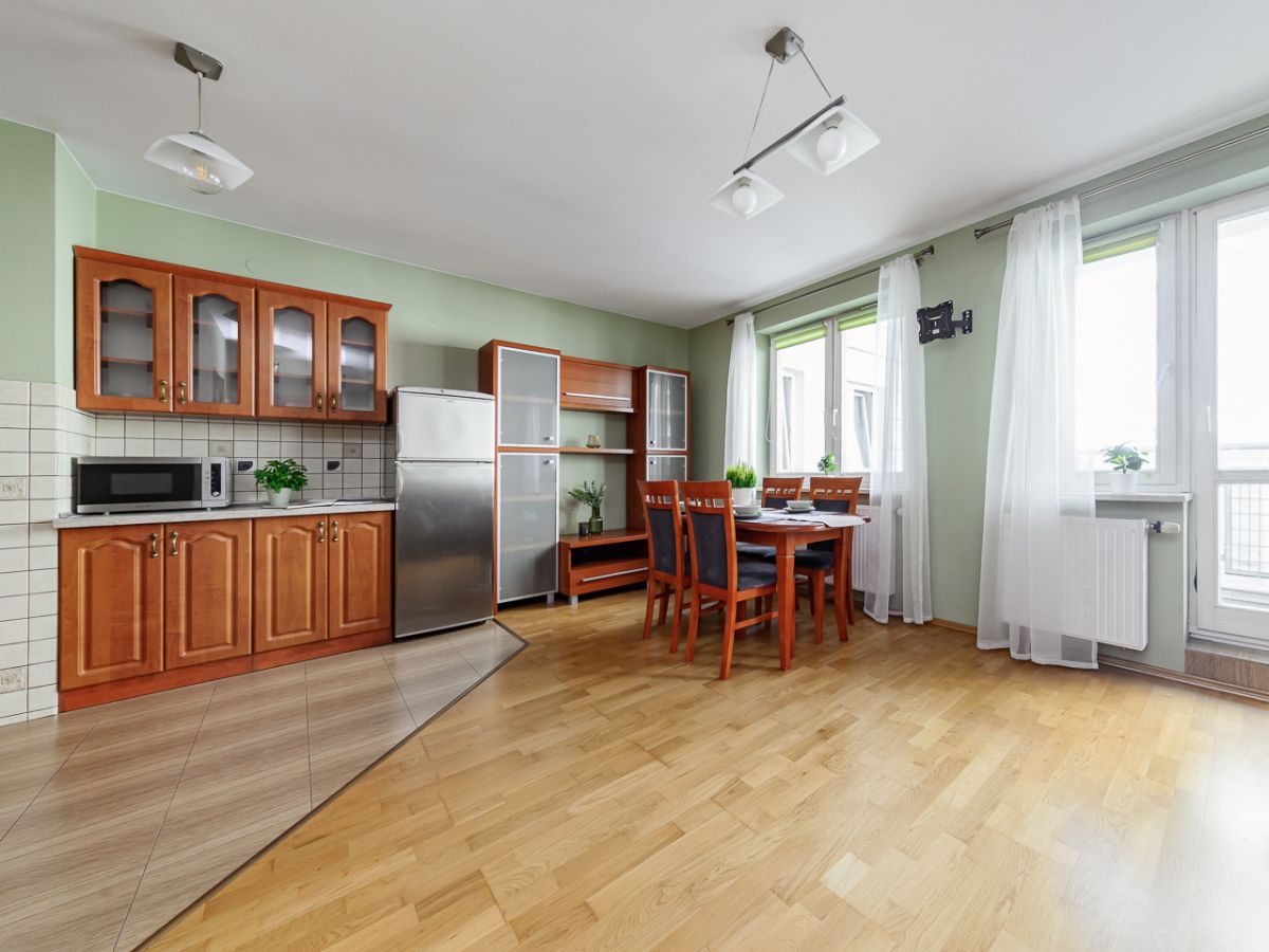 - przestronny, dobrze doświetlony pokój dzienny z aneksem kuchennym (22,20 m²) z wyjściem na klimatyczny balkon (3,20 m²)