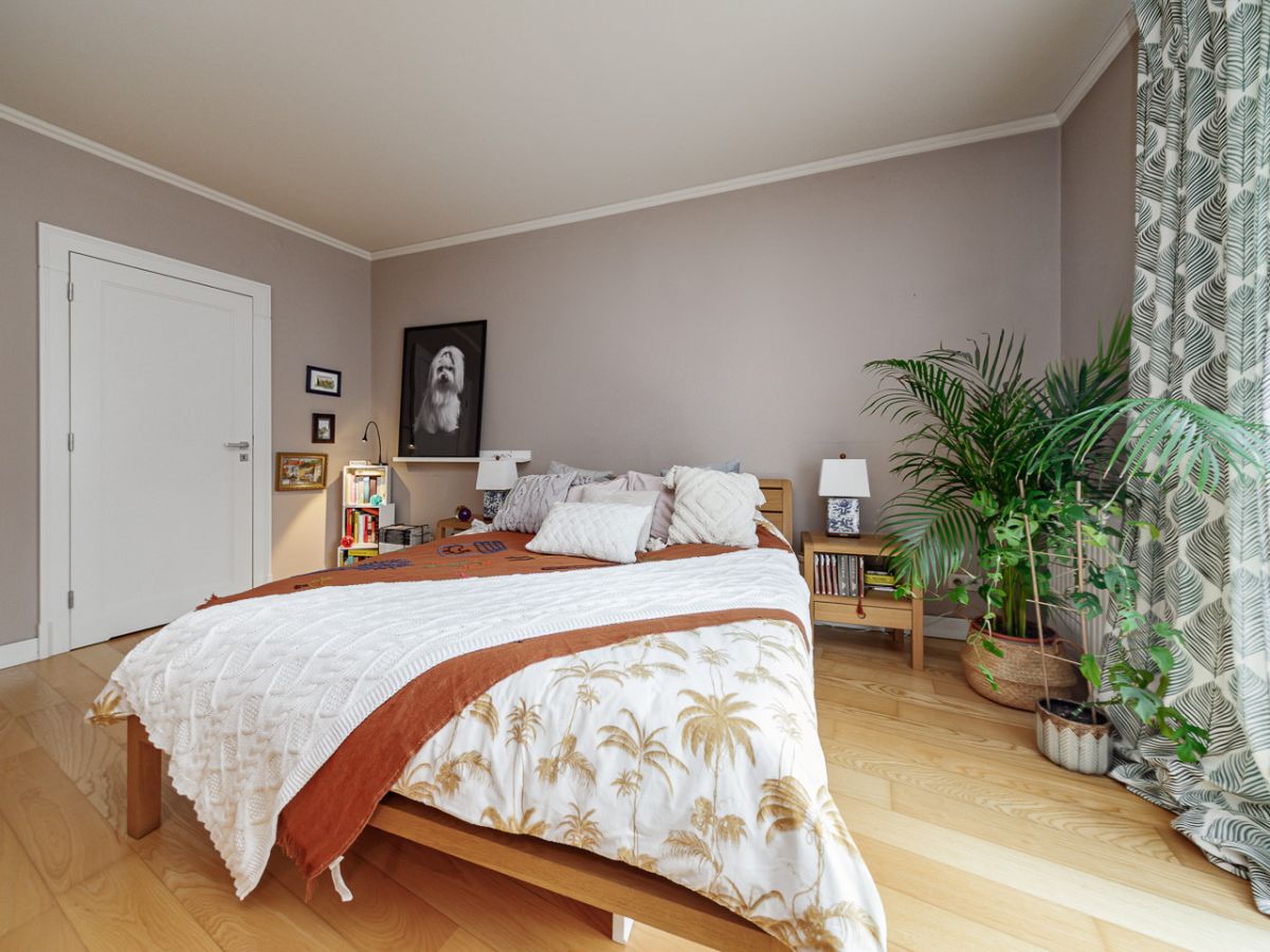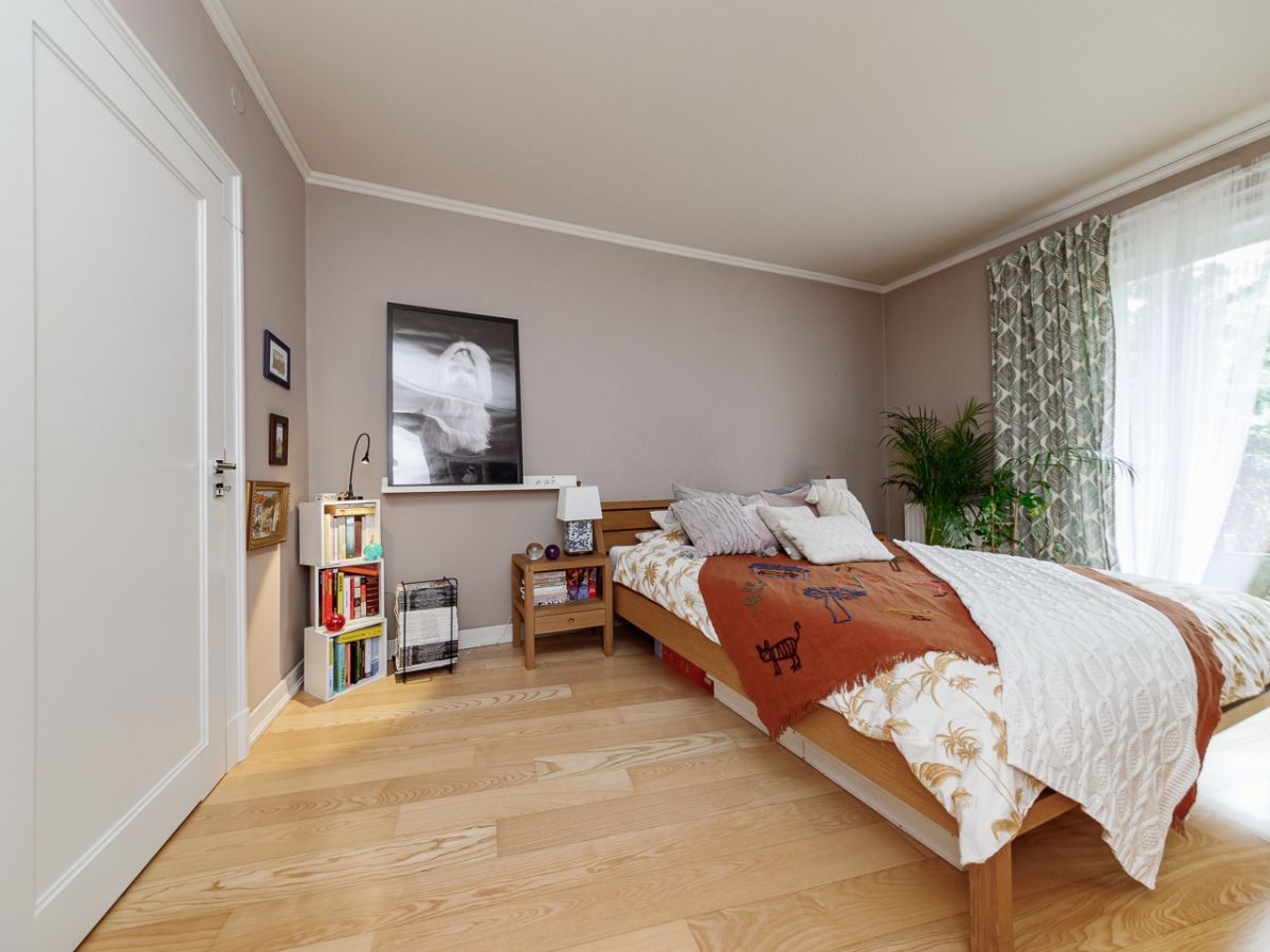 - gustowna sypialnia (18,00 m²) z praktyczną garderobą (6,00 m²), z wyjściem na mniejszą loggię (6,50 m²),