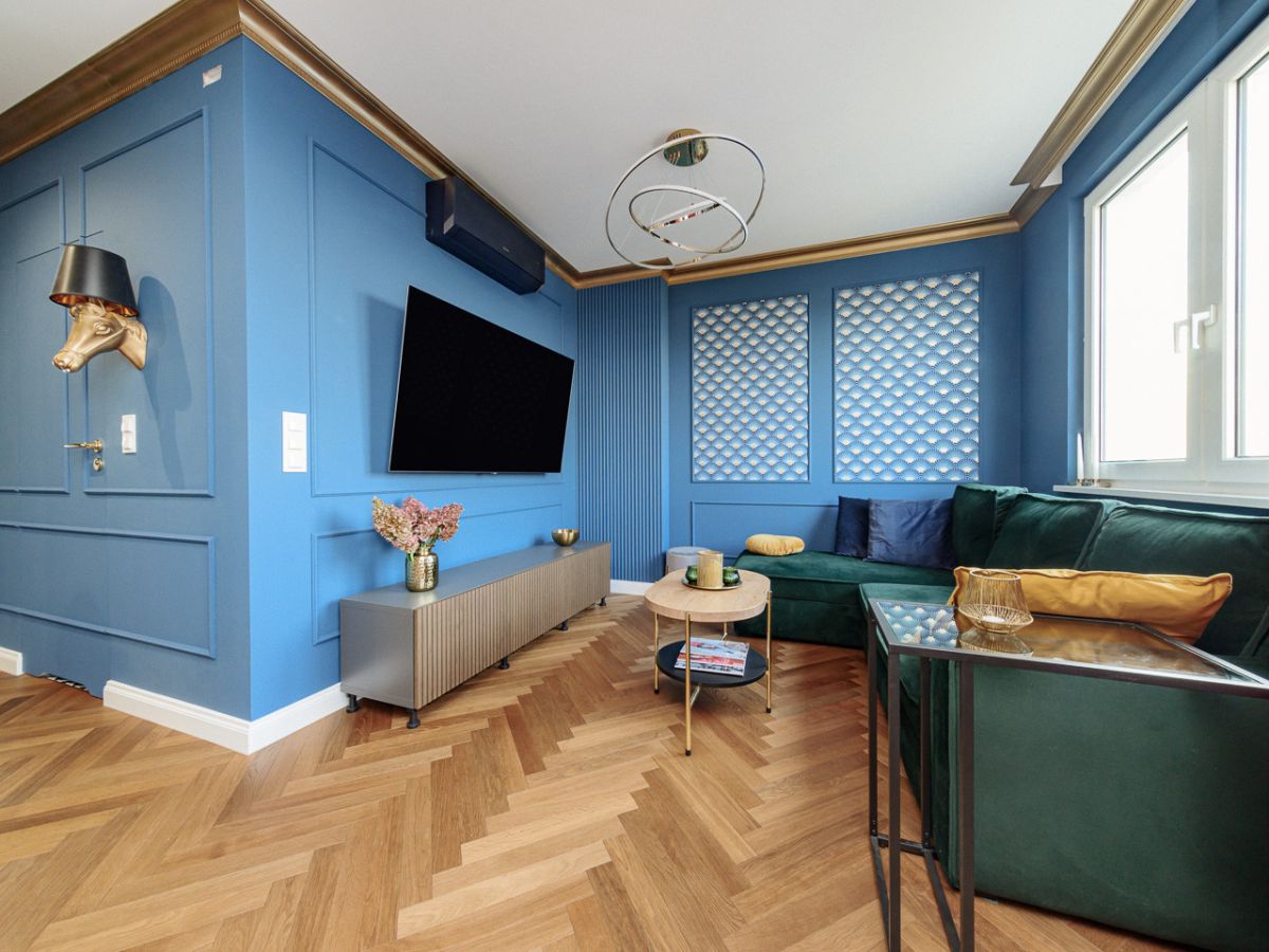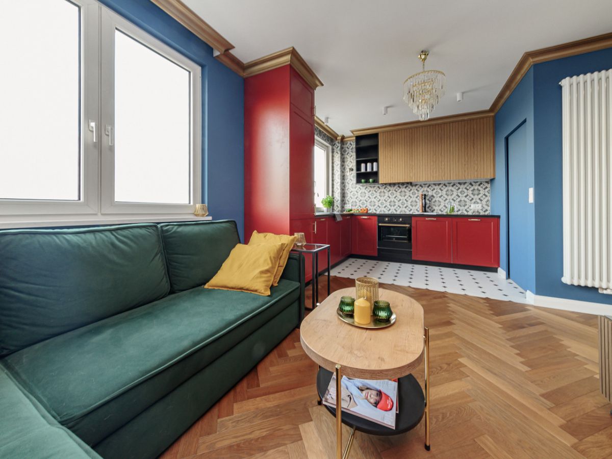 - stylowy salon z oryginalnym aneksem kuchennym (21,00 m2),
