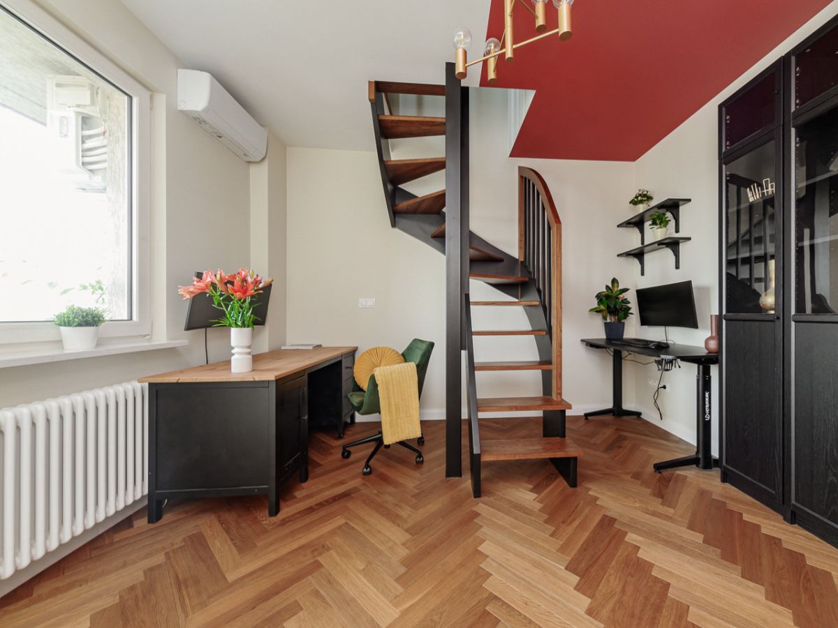 - przestronny gabinet (15,90 m2) z wyjściem na kameralny balkon (3,00 m2),