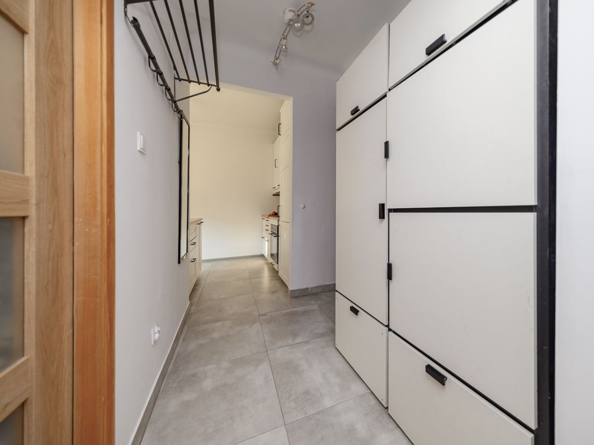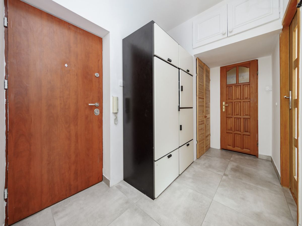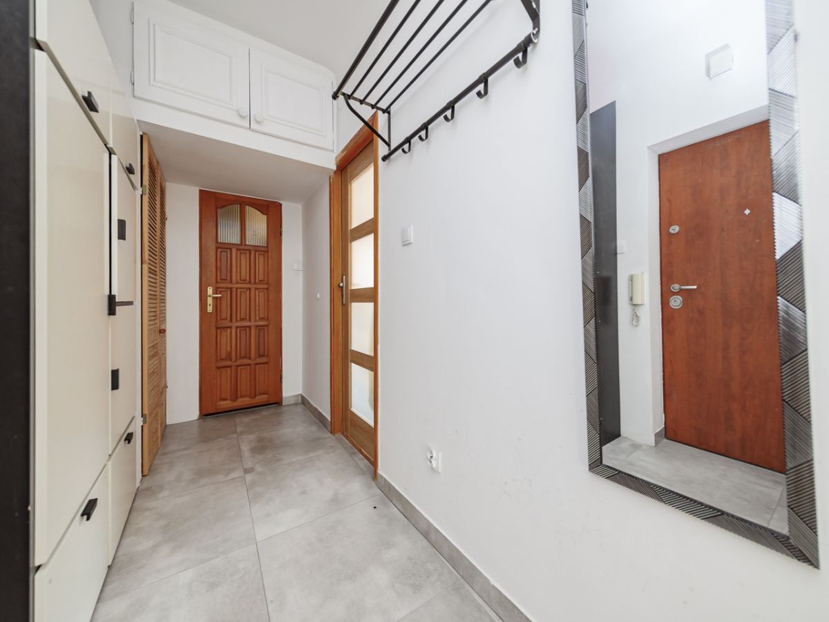 - przedpokój (5,90 m²) z dużą, wolnostojącą szafą oraz pawlaczem.